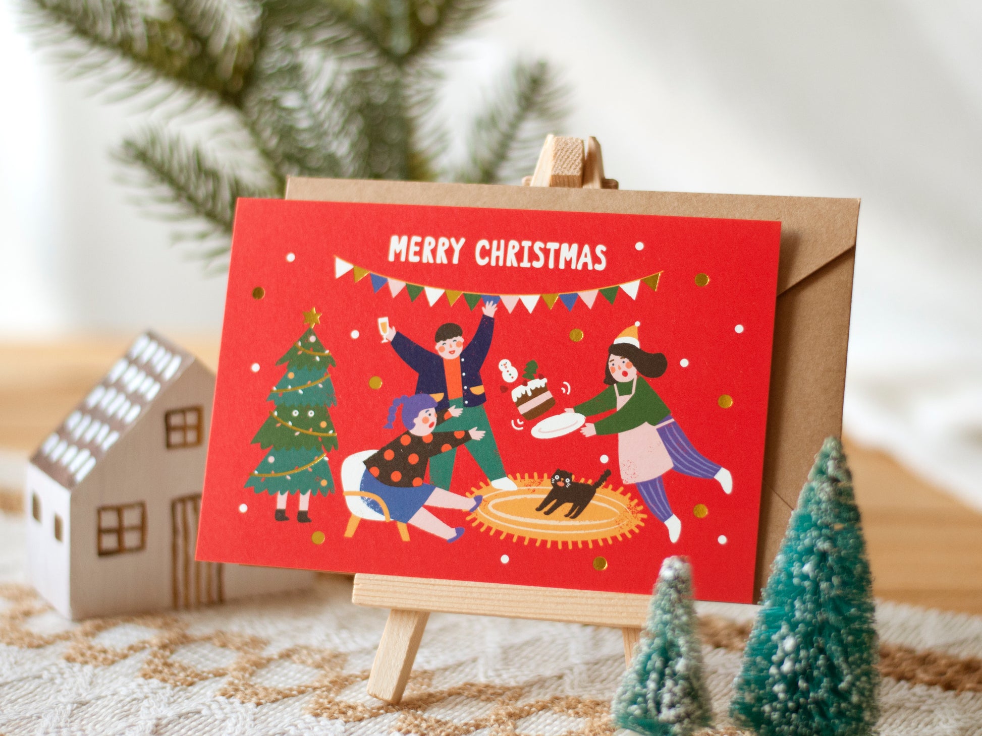 採用燙金工藝設計,閃閃亮亮更特別~風格上亦與別不同,顏色大膽,繽紛豐富,構圖可愛!在聖誕卡上寫上你的心意問候,讓朋友家人們在這溫馨快樂的節日裡都收到你的愛吧~